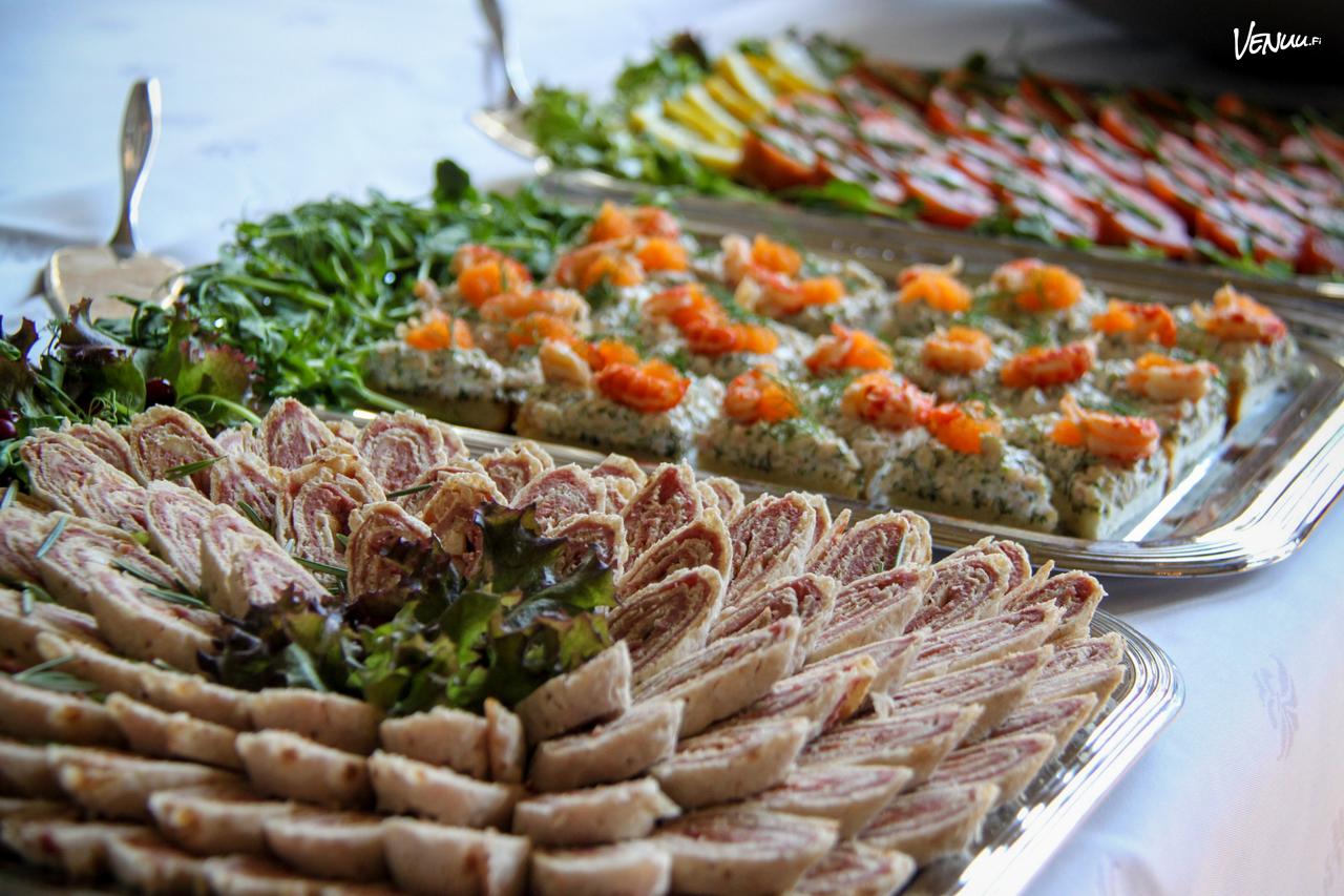 Tarjolla on sekÀ perinteistÀ pöytiintarjoilua ettÀ nÀyttÀviÀ buffet-kokonaisuuksia. Tai miksei helpottaa kotona pidettÀviÀ juhlia tilaamalla valmis juhlamenu, jonka voi hakea take awayna paikalle?