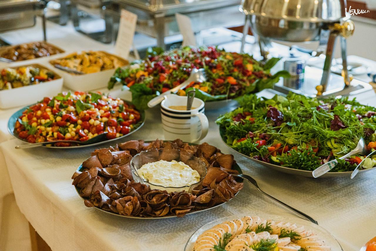 Tarjolla on nÀyttÀviÀ noutopöytÀkattauksia, salaatteja sekÀ tÀyte- ja voileipÀkakkuja, ja tilauksen yhteydessÀ saat vuokrattua myös astiat ja pöytÀliinat. Kaikki on mietitty valmiiksi, sinulle jÀÀ vain juhliminen!