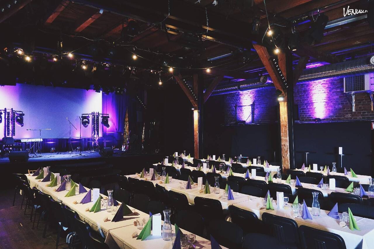 Puuvillatehtaalla sijaitseva Kehräämö on muuntautuva ja esteetön tila 50-400 hengen tapahtumiin. Tunnelmallinen teatteritila soveltuu loistavasti siis isompiinkin pikkujouluihin Porissa. 🎭