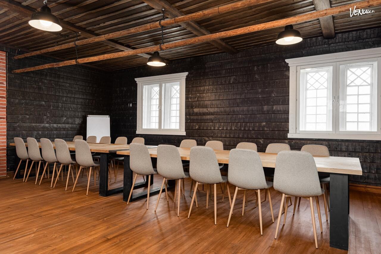 Tilaan mahtuu jopa 200 henkeä, ja avoin pohjaratkaisu yhdistää ylä- ja alakerran saumattomasti. Mekanin oma Huikoo Catering suunnittelee tarjoilut toiveiden mukaan, tuoreita ja paikallisia raaka-aineita hyödyntäen. Sijainti keskustan tuntumassa tekee kulkemisesta tilaan ja takaisin helppoa!