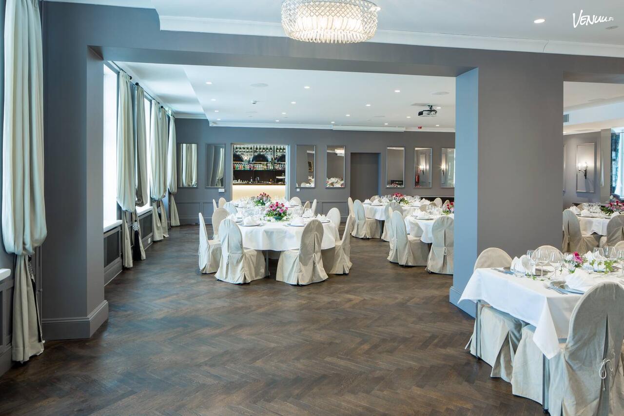Pyöreiden pöytien ääressä voi järjestää jopa 140 hengen hääjuhlan. Tilan arvokas, historiallinen tyyli yhdistettynä nykyaikaiseen tekniikkaan tekee tilasta loistavan hääpaikan. Hääseurueen iloksi hotellista löytyy majoitustilat sekä runsaasti oheisohjelmaa, elämyskylpylä ja Harmony Span hyvinvointipalvelut, joista voi nauttia vaikkapa häiden jälkeisenä päivänä.