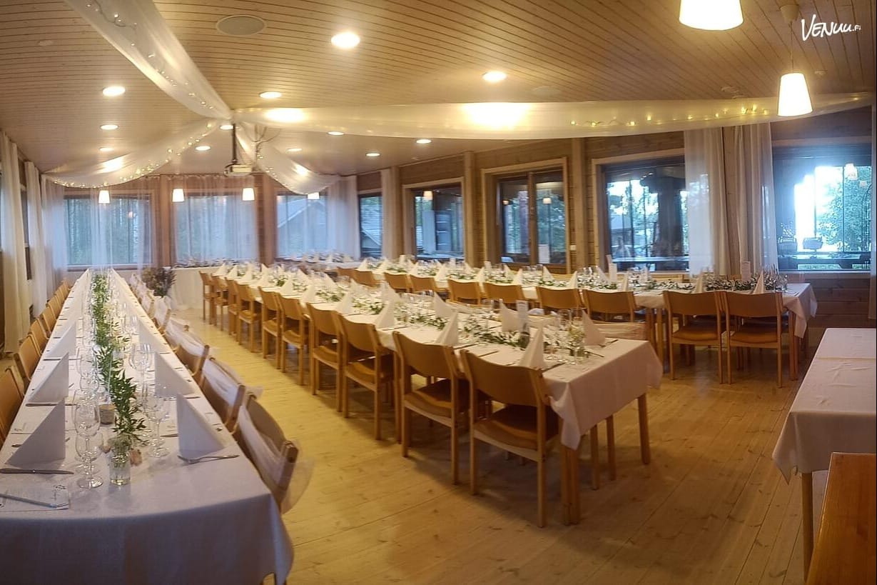 Paviljonki on varustettu laadukkaalla äänentoistolla, videotykeillä ja valkokankaalla, ja sinne on mahdollista tilata herkullinen catering-palvelu suoraan oven taakse. Tilaa on parhaimmillaan 70 hengen istuviin juhliin, ja lisäksi käytössä on lasitettu terassi. Kokonaisuuteen voi liittää myös huviloita tai saunapirtin – juuri sen mukaan, mitä teidän juhlanne kaipaa!