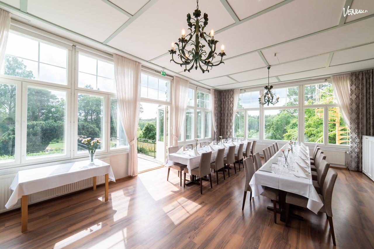 Tarjoilut järjestyvät kätevästi hotellin omasta keittiöstä ja majoitusmahdollisuudet tekevät kokonaisuudesta toimivan myös hääviikonloppuun. Rauhallinen sijainti luonnonhelmassa on täydellinen paikka irtautua arjesta ja keskittyä ikimuistoiseen juhlaan!