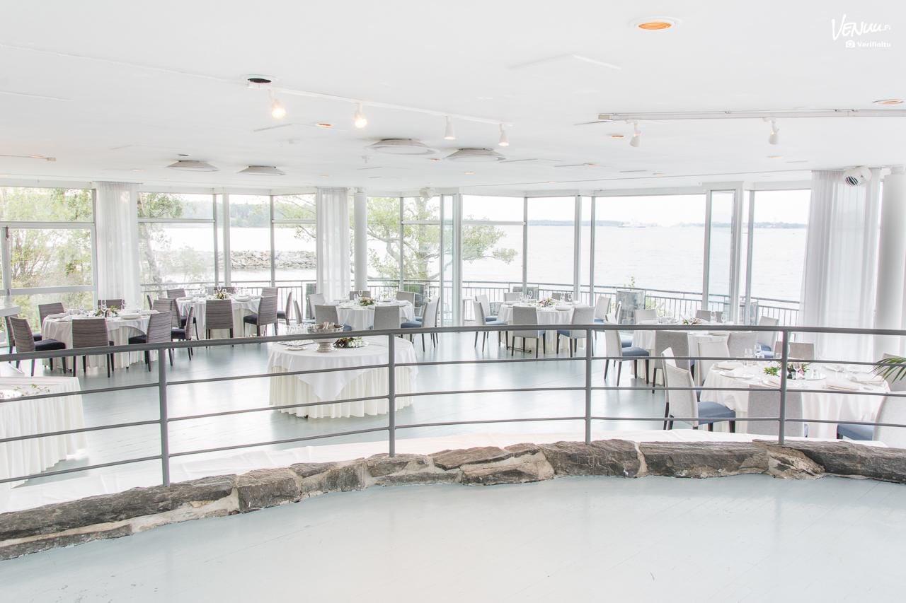 Valkosaaressa sijaitseva Ravintola NJK on yksi Helsingin näyttävimmistä kesähääpaikoista. Vuonna 1900 rakennettu merellinen huvilaravintola hurmaa korkealla Keskisalillaan, jonka ikkunoista avautuvat upeat näkymät Helsingin ylle. Tilaan mahtuu jopa 160 vierasta istuvaan illalliseen, ja verannat tuovat tarvittaessa lisätilaa juhlaan. 🌊