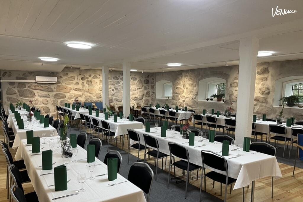 Sipuran Navetan Kivisali tekee vaikutuksen massiivisilla luonnonkiviseinillään ja historiallisella tunnelmallaan. Iso Kivisali sopii 40-100 hengen juhliin ja Pieni Kivisali puolestaan 20-50 hengelle, ja kokonaisuutena paikka palvelee jopa 150 hengen hääjuhlat! 🏰