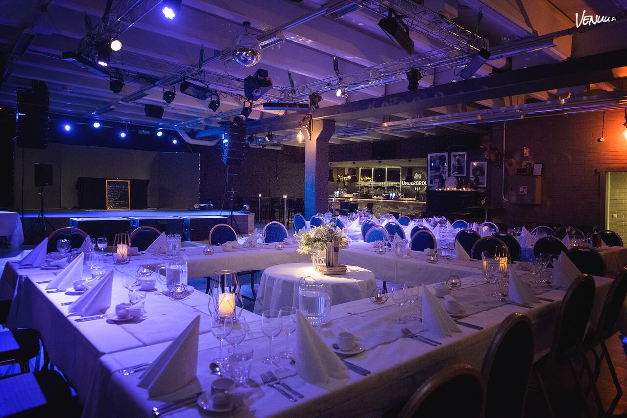 Sawohouse Underground on näyttävä ja muuntautuva juhlatila Kuopiossa, joka on loistava vaihtoehto etenkin kun vieraslista kasvaa suureksi. Tilaan mahtuu istuviin juhliin jopa 300 henkeä, joten tila taipuu myös todella näyttäviin hääjuhliin. 🔥 Hääpaikka toimii kuitenkin hyvin myös pienemmille porukoille.