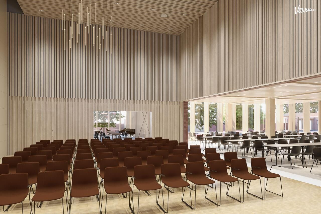 Kulturhuset Fiini on Porin keskustaan alkuvuodesta 2026 avautuva kulttuuritalo, joka tarjoaa modernit ja monipuoliset tilat myös häihin! Jammi-sali voidaan jakaa kahdeksi pienemmäksi tilaksi tai yhdistää suureksi juhlatilaksi, jonka tunnelmaa voi muokata muun muassa valaistuksella ja akustiikkaverhoilla.