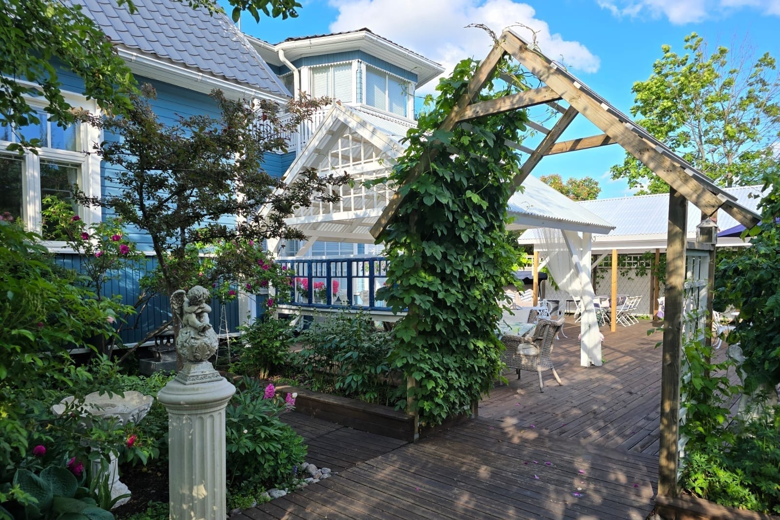 Mint Garden tarjoaa idyllisen puutarhan kesähäihin Tikkurilassa! Suuri patio ja katokset mahdollistavat noin 50 vieraan juhlat ulkona. Tunnelma on lämmin ja kotoisa – eli puutarhajuhlat parhaalla mahdollisella tavalla. 🌸