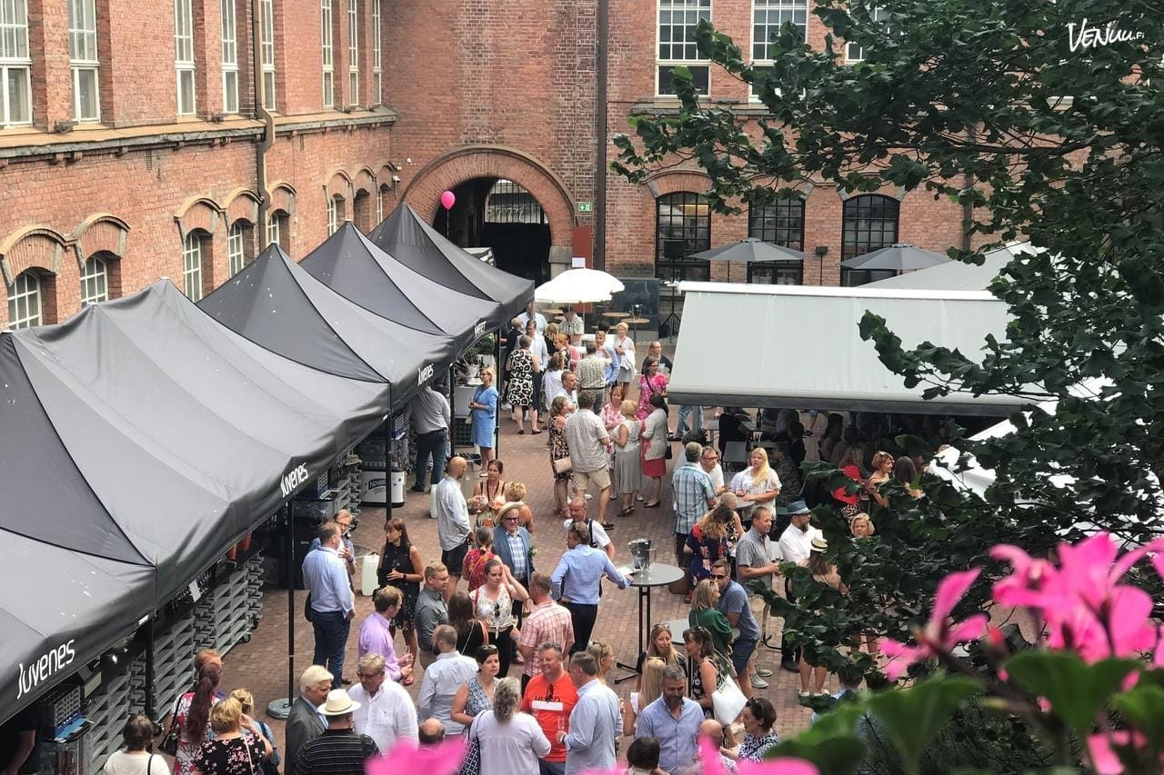 Frenckellin linnamainen sisäpiha Tampereen keskustassa tarjoaa näyttävän ja urbaanin paikan kesähäihin ulkona. Tapahtumapihalla voi järjestää touko-syyskuu välillä jopa 250 hengen ruokailevia tilaisuuksia, joten tämä on loistava vaihtoehto myös suurempiin hääjuhliin ulkona. ✨