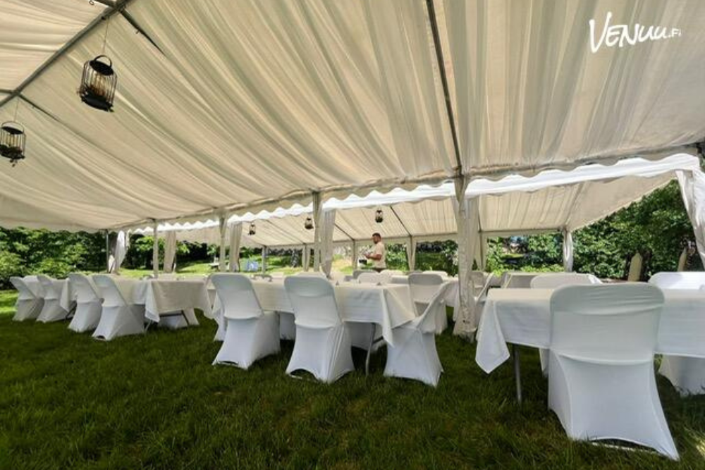 Venuusta löydät myös juhlatelttoja sekä vuokrakalusteita, joiden avulla häät ulkona onnistuu tyylikkäästi! ✨