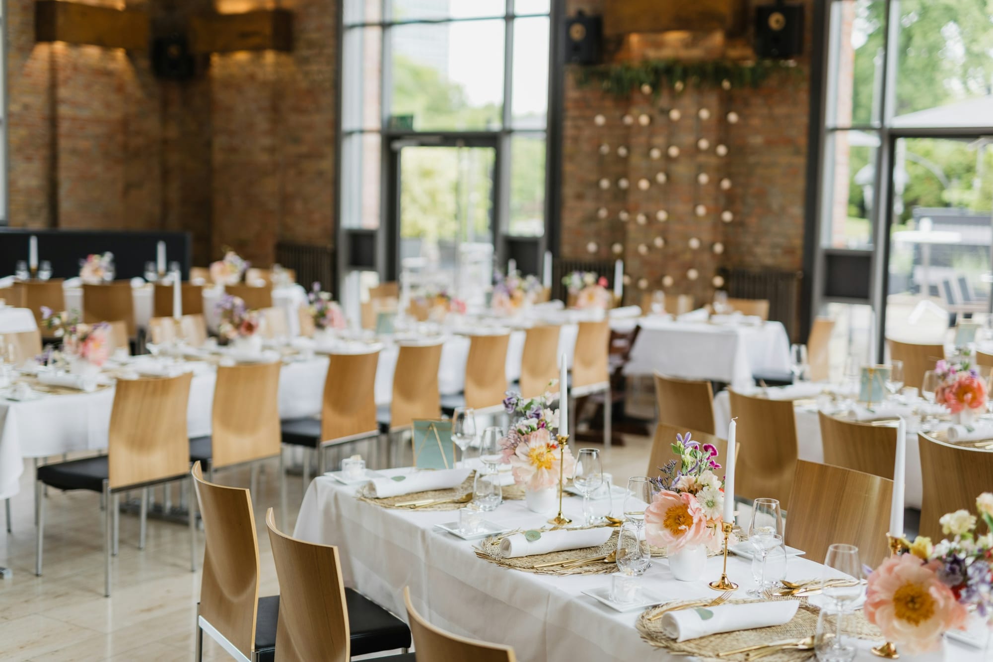 - Pöytien muoto vaikuttaa keskusteluun. Pyöreät pöydät kannustavat yhteiseen jutteluun, pitkät pöydät luovat kauniin visuaalisen linjan. Molemmissa on puolensa! Tätä kannattaa miettiä jo kun varaatte hääpaikkaa.