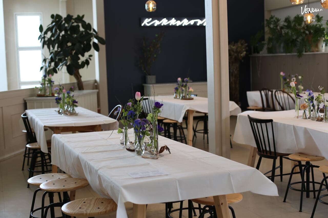 Järvenpään Kukkatalo on valoisa ja luova juhlatila noin 30 hengelle! Hurmaava juhlatila on täydellinen paikka esimerkiksi babyshowereihin tai valmistujaisiin. Tila koostuu kahdesta, lasiseinällä erotetusta huoneesta, joten tila tuntuu avaralta ja valoisalta. 🌸
