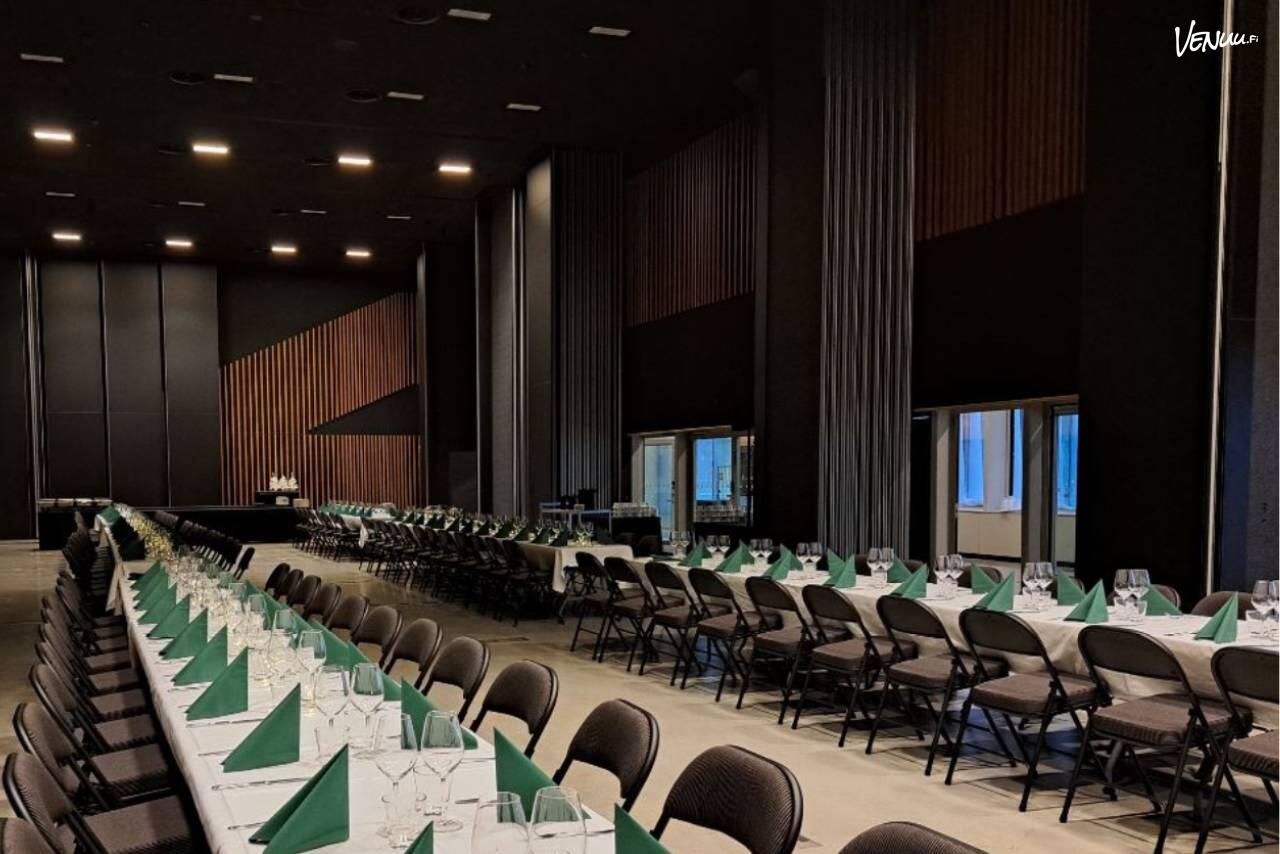 Satama Areenan XS-Sali on tilaihme, jossa yhdistyy arkkitehtoninen eleganssi ja poikkeuksellisen hyvä muunneltavuus. Juhlatila sijaitsee vaikuttavan tapahtumatalon toisessa kerroksessa ja tarjoaa näkymän suoraan pääareenan lavalle. Kuin oma aitiopaikka keskellä juhlahumua!