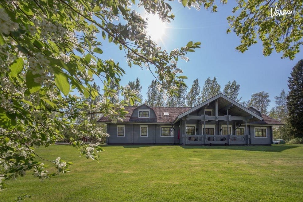 Villa Koskenäyräs on upea hirsilinna Kymijoen varrella!🌲 Tilat soveltuvat jopa 80 hengen juhliin ja mahdollistavat kaiken hääjuhlista rentoihin illanviettoihin.