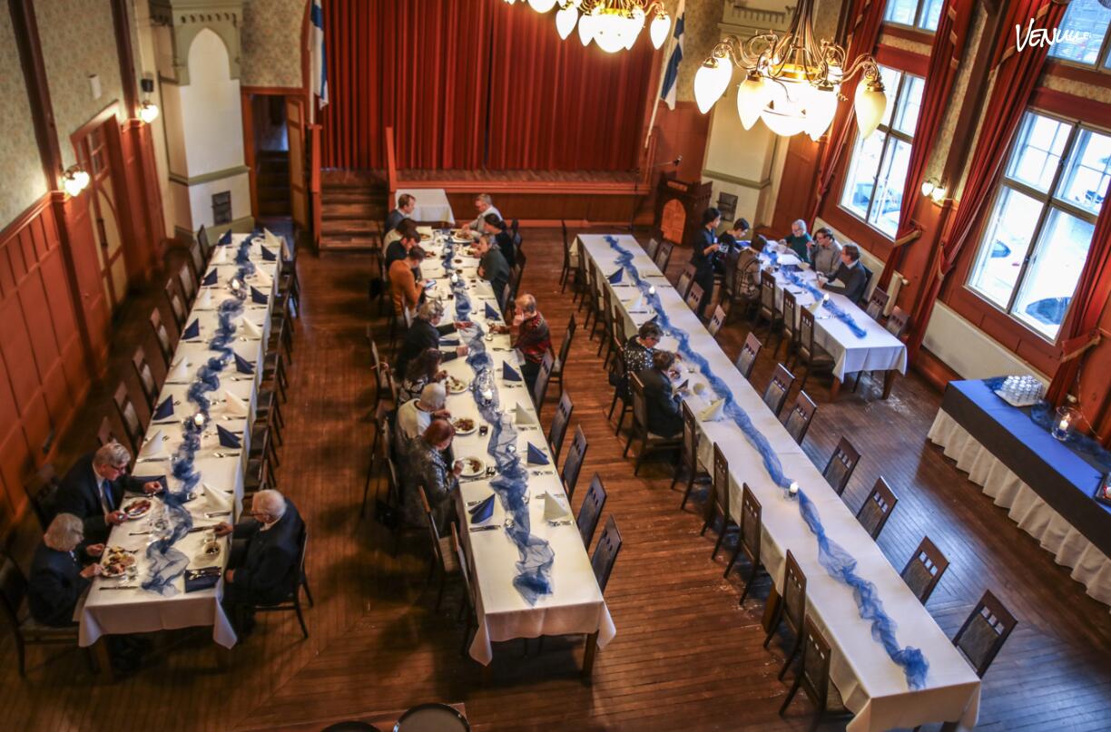 Hotelli-Ravintola Alman upea Pääsali on elegantti juhlatila, jossa viettää unelmiesi juhlat! Tila on remontoitu kauniisti historiaa ja perinteistä ilmettä kunnioittaen. Pääsali on täydellinen, jos etsit yrityksen juhliin tai vaikkapa häihin tunnelmallista miljöötä. 🚂✨