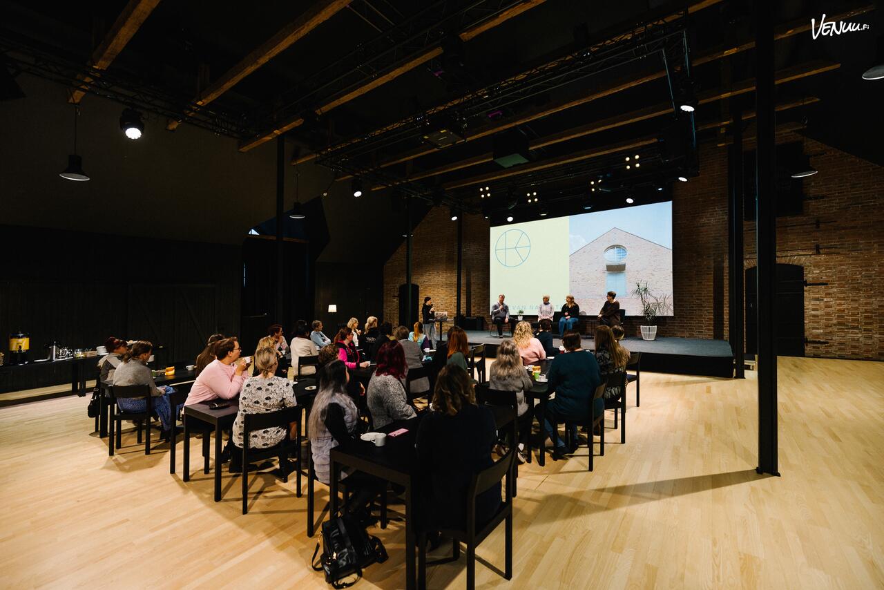 Monipuolisen tilan valo- ja äänentoistotekniikka on huippuluokkaa – jopa konsertit onnistuvat täällä. Juhlatilassa on myös anniskeluoikeudet ja ruokatarjoilutkin järjestyvät kätevästi paikan päältä. Tilaan on esteetön kulku!
