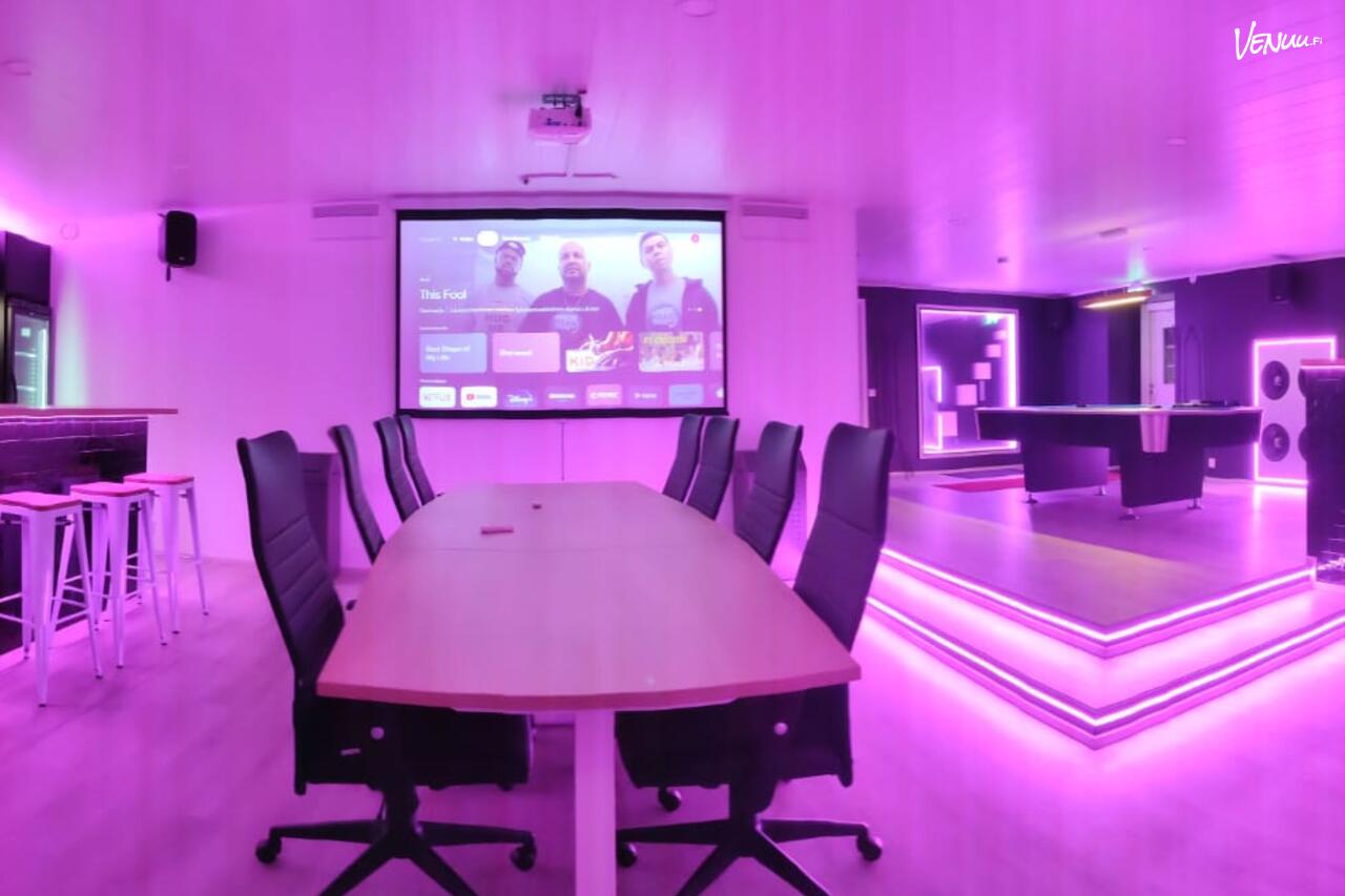 Itse juhlasali on lähes 200m² ja sen varusteluun kuuluu muun muassa 4K videotykki, 180" valkokangas, karaokelaitteet sekä Singa-sovellus, biljardipöytä ja Playstation. Hyvin varusteltu keittiö, josta löytyy muun muassa suurtaloushella ja pikatiskikone, helpottaa juhlien järjestämistä.