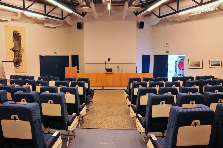 Auditoriossa on Boeing 717-200 -lentokoneen istuimet parhaimmillaan 215 henkilölle, mutta tila toimii hyvin pienemmälläkin porukalla. Käytössä on kattava AV-varustelu esityksiä varten. Tila sopii erinomaisesti seminaareihin ja suurempiin kokouspäiviin!