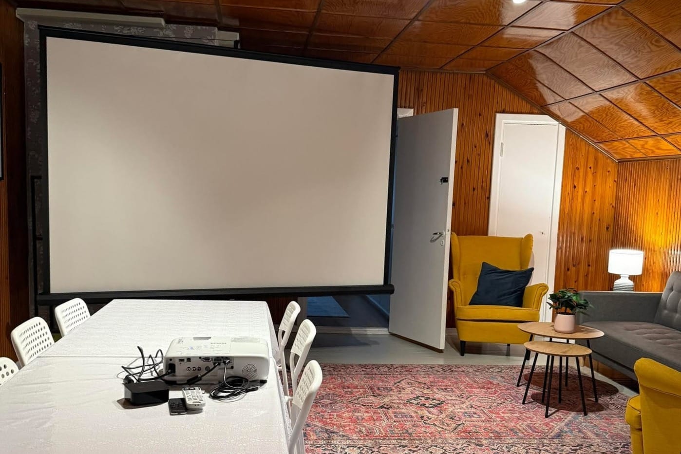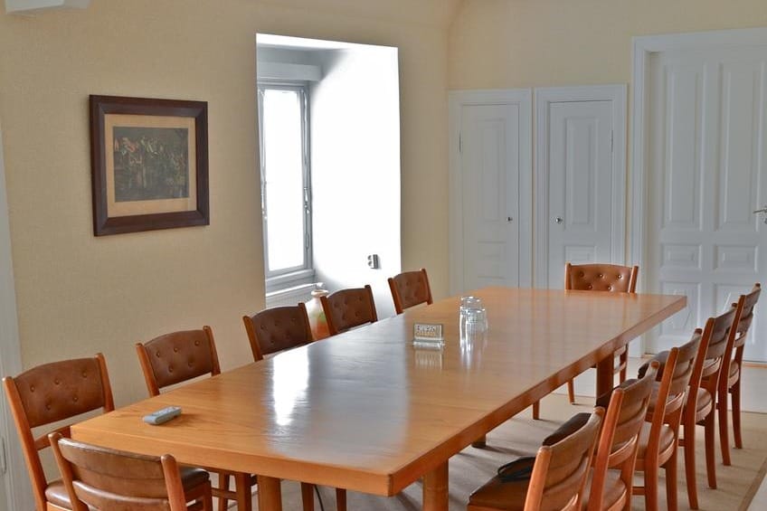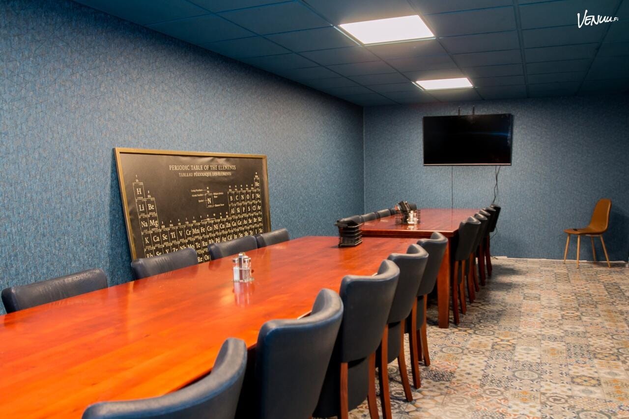 Villa Rouhee hurmaa italialaishenkisellä tunnelmallaan ja monipuolisilla puitteillaan. Tämä 340m2 kokonaisuus sisältää mm. kokoushuoneen (kuvassa) sekä pääsalin 40-50 hengelle. Koko rakennuksen kapasiteetti yltää jopa 100 henkilöön, joten myös isommat kokous- ja työryhmät mahtuvat mainiosti. 🏡