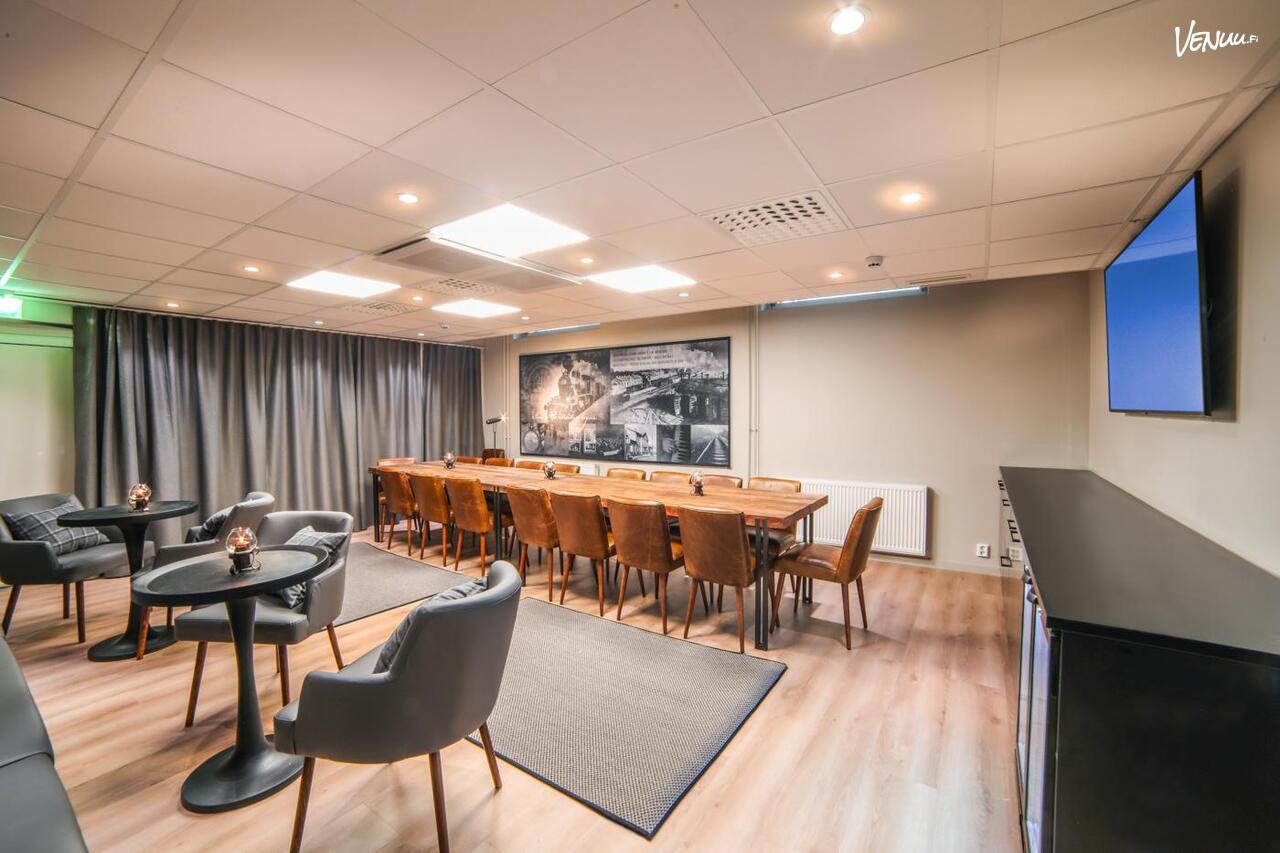 Tilasta löytyy kaksi suurta LED-näyttöä, mikrofoni- ja äänijärjestelmät sekä langaton yhteys. Kokouksen jälkeen voi siirtyä hotellin saunaosastolle tai maisemaparvekkeella varustettuun takkakabinettiin, mikä tarjoaa rentouttavan päätöksen päivälle.
