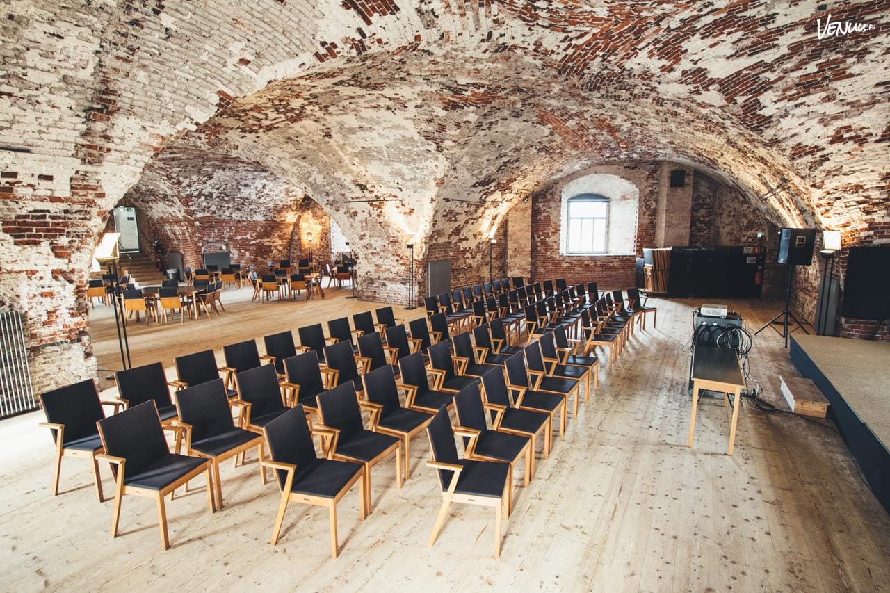 Historiallinen ja näyttävä Tenalji von Fersen Suomenlinnassa tarjoaa puitteet, jotka tekevät vaikutuksen! Tilan upea holvikatto ja ajan patinoima tiilipinta huokuvat arvokkuutta, mutta muuntautuvat silti monipuolisesti erilaiseen kokous- ja seminaarikäyttöön.