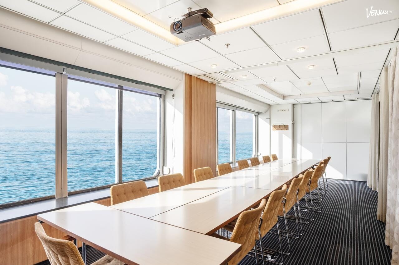 Tämän merellisempää kokoustilaa saa hakea! Viking Line Cinderella vie sinut Itämerelle asti. Valoisa kokoustila B21 sopii 17 hengen ryhmille ja tarjoaa upeat näkymät saaristoon.