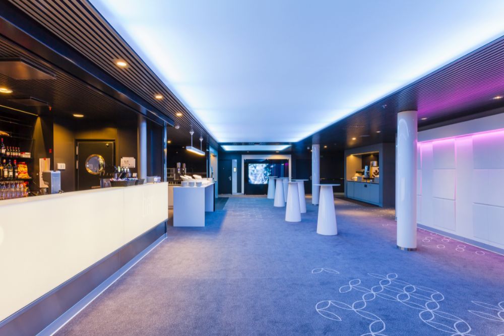 Laivan dynaaminen kokousosasto taipuu moneen! Osasto on varusteltu laadukkaalla tekniikalla ja design-huonekaluilla. Suurimman kokoustilan vakiovarusteisiin kuuluu langaton mikrofoni, äänentoisto, LCD-näytöt ja videotykki. Tila koostuu 11 kokoustilasta sekä näyttävästä aulatilasta. Tyylikkäässä tilassa tapahtumat voivat kestää jopa myöhäiseen iltaan ja jatkot tietty tapahtuvat laivan yökerhossa! 🌌
