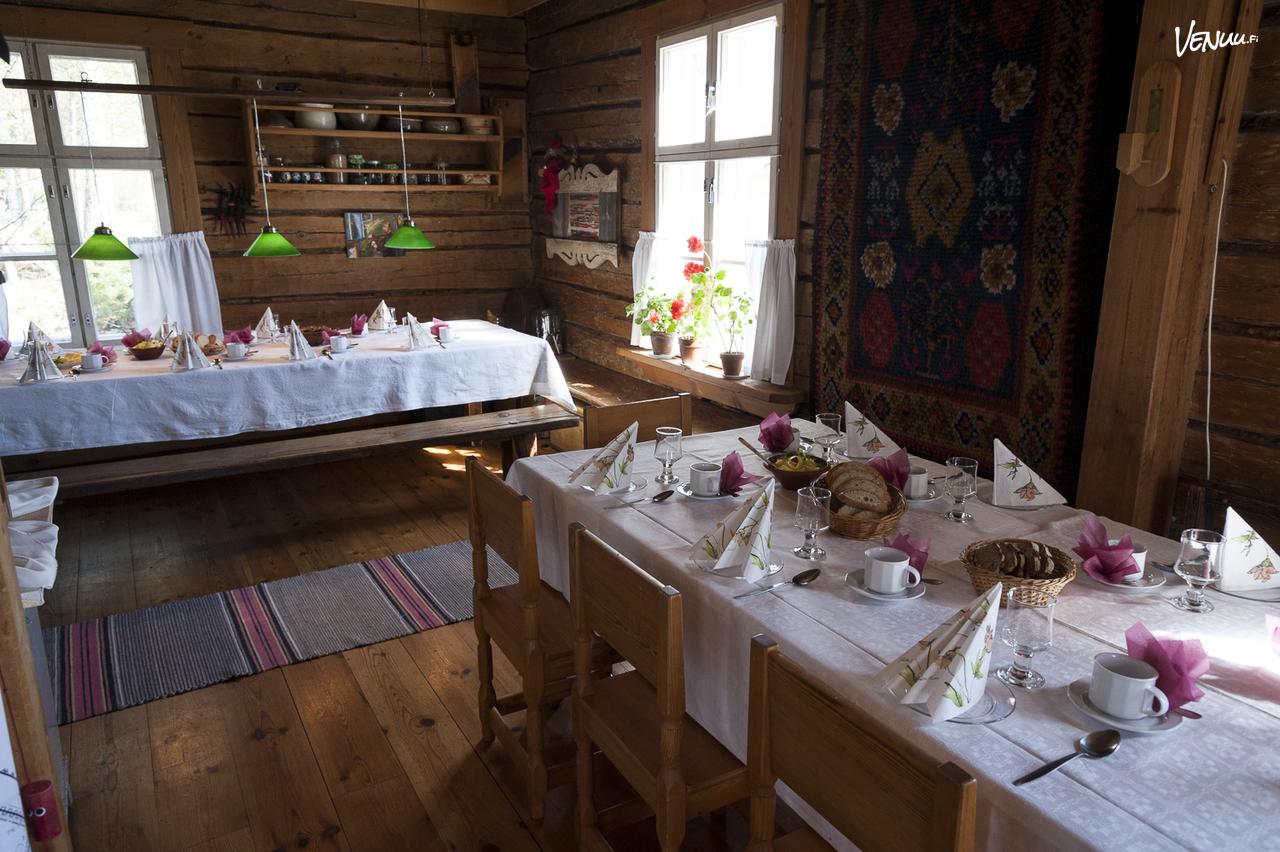 Yli satavuotias Äijälän Talo huokuu historiaa ja tunnelmaa, mikä tekee siitä ihanteellisen paikan perhejuhliin ja muihin pieniin tilaisuuksiin! Tuvassa on ruokailupaikat noin 40 hengelle ja salissa noin 20 hengelle, joten tila taipuu erilaisten seurueiden tarpeisiin. Kodikas tyyli tuo juhlaan lämminhenkisen fiiliksen!
