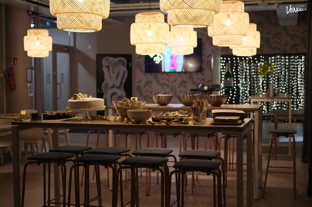 Learning Cafe on rento ja monipuolinen juhlatila, joka taipuu monenlaisiin juhlatilaisuuksiin, kuten valmistujaisiin ja syntymäpäiviin, sekä muihin rentoihin illanviettoihin. Tilaan on oma erillinen sisäänkäynnin ja sinne mahtuu maksimissaan 50 henkeä. Tarjoilut saa tuoda itse, joten illan menun voi suunnitella omaan makuun sopivaksi.