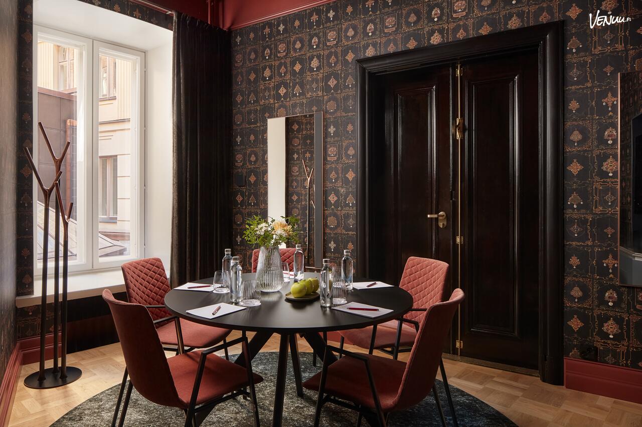 Armas kabinetti on pieni mutta tyylikäs kokoustila Helsingin sydämessä, upouudessa NH Collection Helsinki Grand Hansa -hotellissa. Tilaan mahtuu viisi henkeä, joten se sopii täydellisesti tiiviisiin palavereihin tai ideointisessioihin.