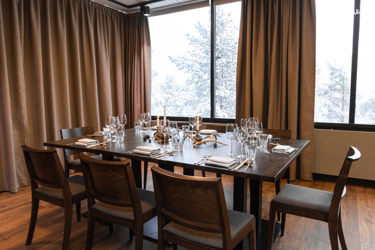 Seita-kabinetti soveltuu noin 12 hengen pienimuotoisiin pikkujouluihin. Ikkunoista avautuvat näkymät Ounasvaaran luontoon, mikä tuo luonnon osaksi juhlaa. Hotellimiljöö mahdollistaa sen, että firman pikkujouluihin voidaan yhdistää helposti myös majoitus ja ravintolapalvelut. Näin koko illan voi viettää saman katon alla!