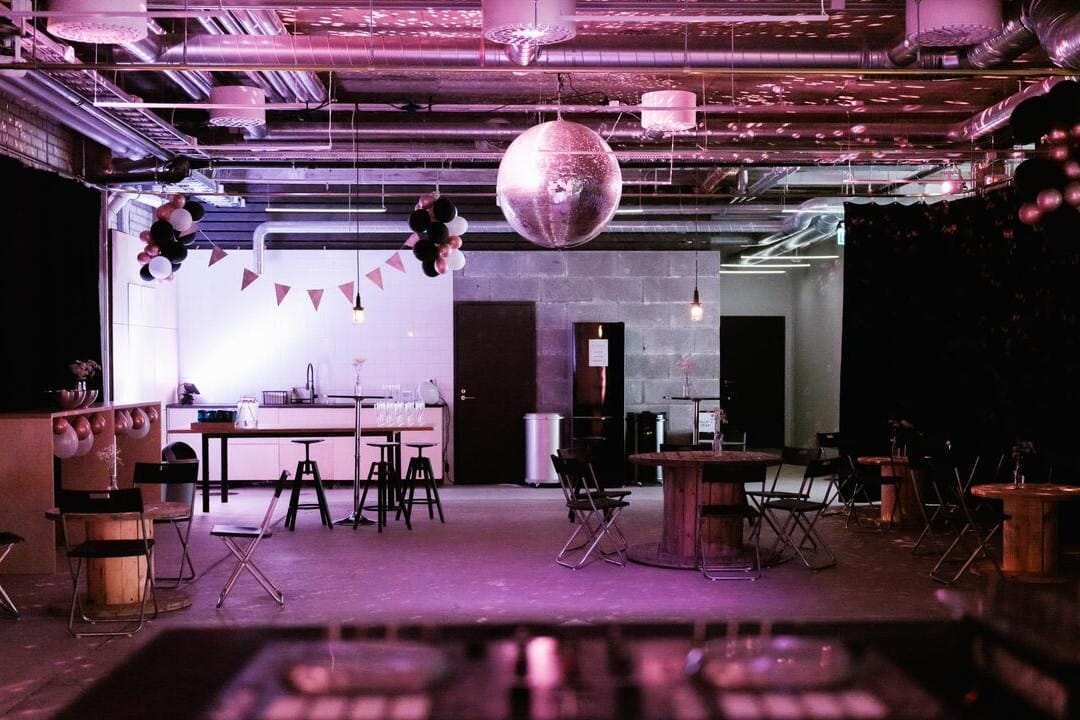 Tilassa on ehkäpä koko Rovaniemen suurin discopallo, joka tuo juhlaan näyttävän visuaalisen elementin. Myöhäinen poistumisaika antaa tilaa pidemmällekin illanvietolle, mikä sopii hyvin firman pikkujouluihin!