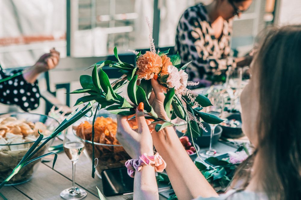 Glitternistin kukkaseppele-workshopissa jokainen osallistuja saa tehdä itselleen upean kukkakruunun tai esimerkiksi rintakoristeen! Viherpeukaloa ei tarvita, sillä mukana on aina vähintään yksi glitternisteistä ohjaamassa seppeleiden tekoa. Workshopia voi kustomoida lähes rajattomasti vuodenajan kukkavalikoima huomioon ottaen. Workshop voidaan pitää sisällä tai ulkona ja tarvittaessa tilat järjestyy myös Glitternistin kautta!