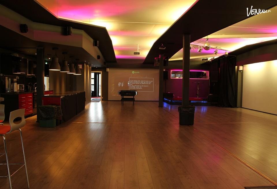 Oma baaritiski, esiintymislava, DJ-kamat ja mahdollisuus omaan bändiin tekevät tilasta täydellisen kaikenlaisiin synttärijuhliin. Juomat hoituvat yläkerran baarista tai suoraan alakertaan omalla baarimikolla.