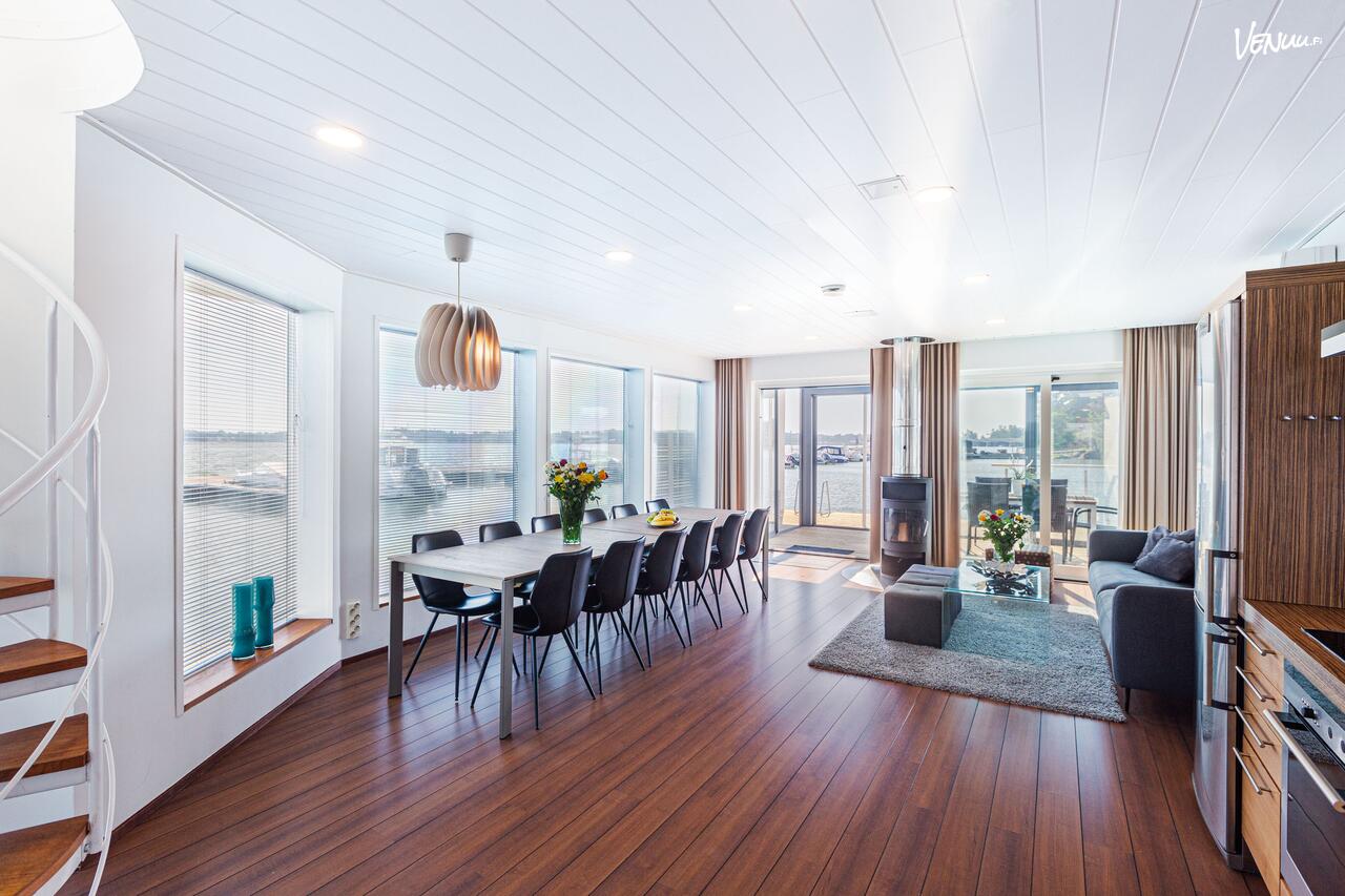 Kauniit salit, suomalaiset design-kalusteet, suuret parvekkeet ja kaksi rantasaunaa tekevät juhlasta arvokkaan ja aidosti ainutlaatuisen. Sisätiloissa istutaan pitkän pöydän ääressä tai nautitaan pianohuoneen tunnelmasta, ja ulkona voi viettää vaikka grilli-illan järvimaisemissa.