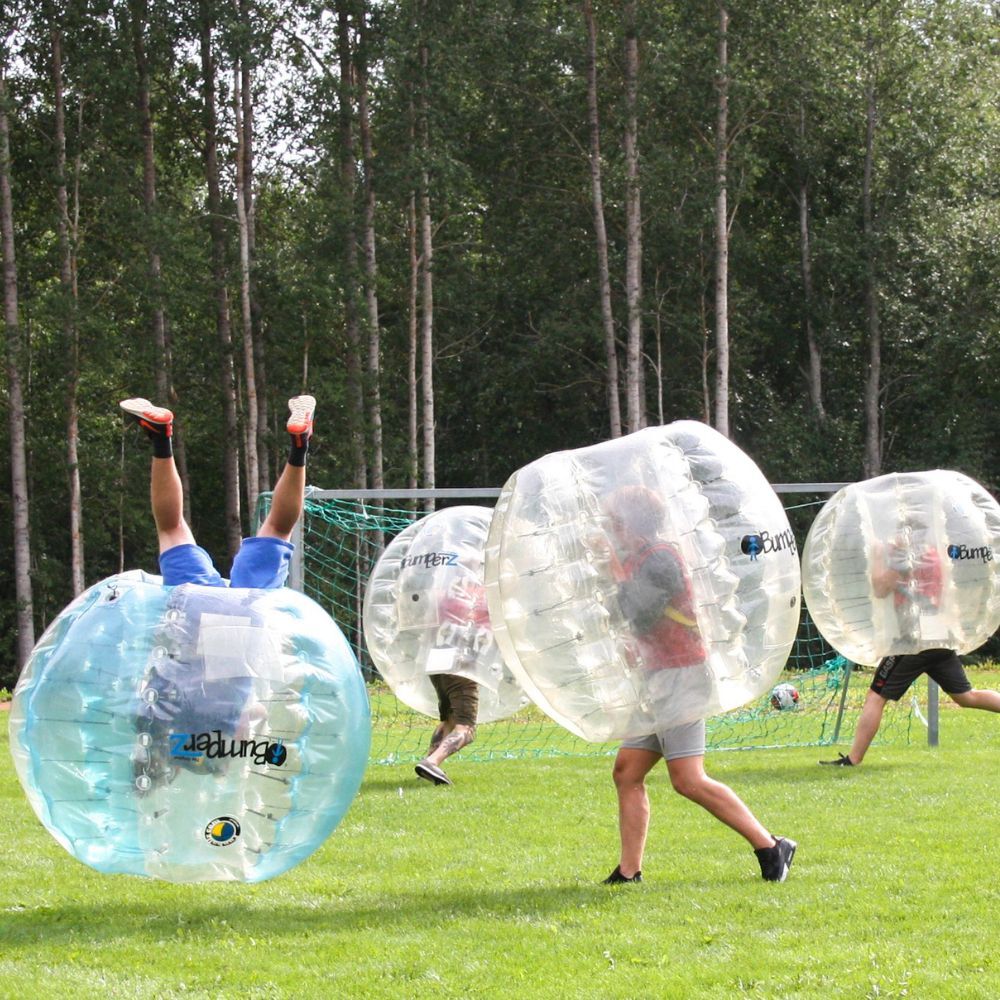 ⚽️ Kuplajalkapallo, Tampere – Täältä tullaan, pois alta! Kuplajalkapallossa pääsette pelaamaan perinteistä jalkapalloa, mutta pienellä twistillä. Kuplapukujen avulla taklaaminen tapahtuu yllättävän vaivattomasti. 😉