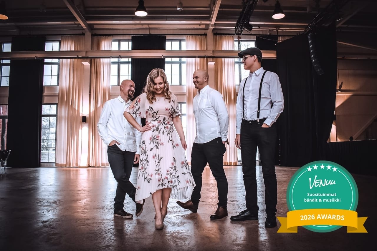 Juhlien tunnelma pysyy taatusti huipussaan, kun BilebÀndi Tuulikone astelee lavalle! HeidÀn kanssaan voit luottaa takuuvarmaan laatuun. BÀndin tyyliin kuuluu soittaa ajankohtaista musiikkia groovella ja rockin mausteilla!