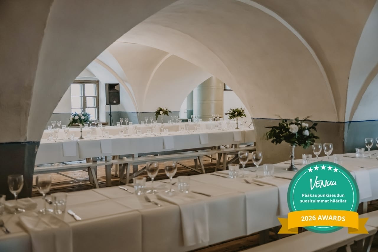 Suomenlinnan Pirunkirkon juhlasali tarjoaa ainutlaatuiset puitteet hÀille historiallisessa ympÀristössÀ. Tunnelmallinen juhlasali hurmaa parit, jotka etsivÀt arvokasta, mutta persoonallista hÀÀtilaa! Jykevien lankkulattioiden sekÀ upeiden seinÀmaalausten ja holvikaarien ansiosta tila ei juuri ylimÀÀrÀisiÀ koristeluja kaipaa.
