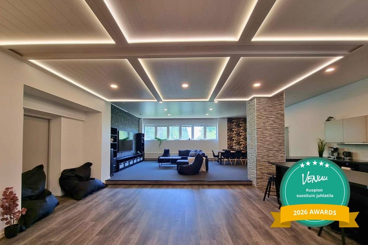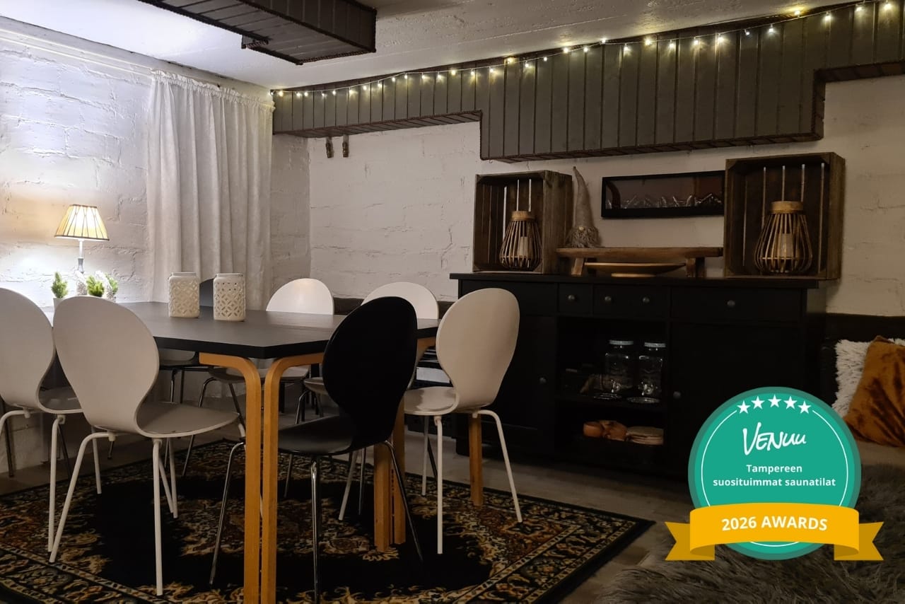 Woimasauna tarjoaa elÀmykselliset puitteet juhliin Kuopiossa! Tila on paljon muutakin kuin pelkkÀ sauna: juhlatilassa on hyvin tilaa niin ruokailuun, oleskeluun ja jopa kokkailuunkin tÀysin varustellussa keittiössÀ. TÀssÀ on tila, jossa viihtyy pidempÀÀnkin!