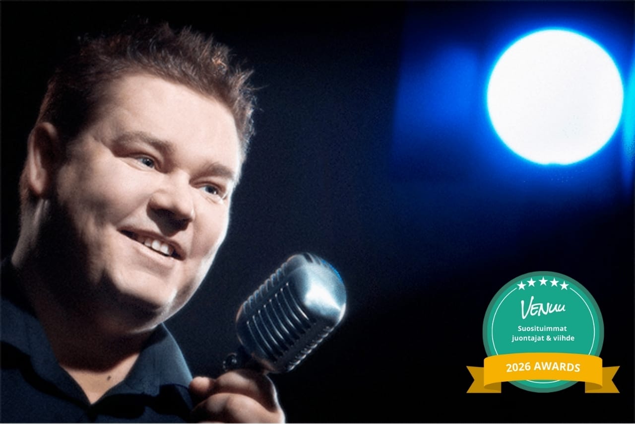 Simo Takanen yhdistÀÀ juonnon ja stand upin luontevaksi kokonaisuudeksi! Komiikka kulkeekin lÀpi tapahtuman luoden siihen loputonta viihdettÀ, mutta samalla Simo juontaa tilaisuuden ja kuljettaa sitÀ eteenpÀin vankalla ammattitaidolla.