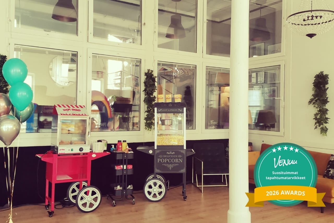 Kivaa Juhliisi tarjoaa viihdyttÀvÀt herkkukoneet juhliin! Nostalgiset hattara- ja popcorn-koneet tuovat juhlaan hauskan vetonaulan. Laitteet saa vuokrattua joustavasti ja niiden helppokÀyttöisyys takaa, ettÀ tarjoilut onnistuu keneltÀ vain!