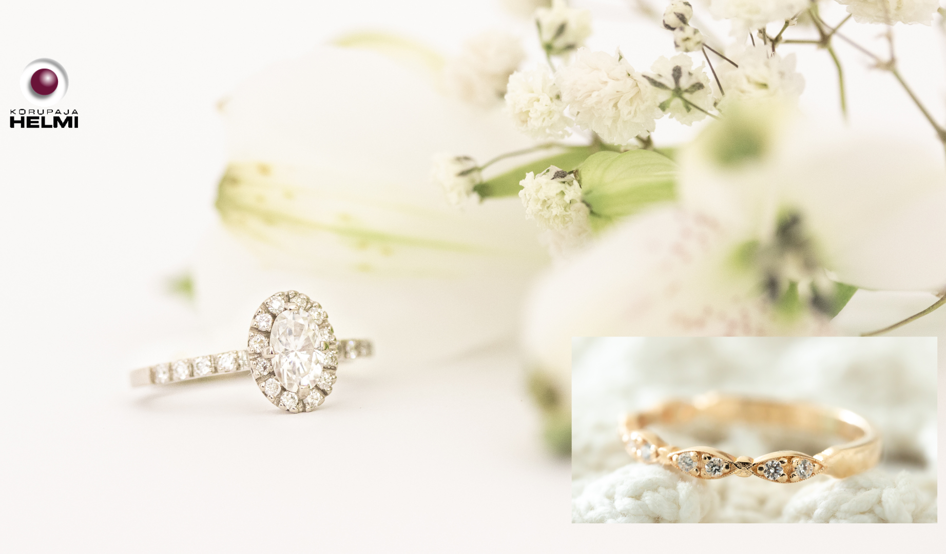 Korupaja Helmi toteuttaa myös sormuksia mittatilaustyönä ja osaavan kultasepän kanssa korun saa juuri oman näköiseksi. Sormuksissa käytetään kierrätettyä ja puhdistettua ekologista jalometallia, mutta halutessaan koru voidaan tehdä myös asiakkaan tuomasta materiaalista! Timantit ja muut jalokivet tilataan Helmen hyväksi todetuilta kumppaneilta.