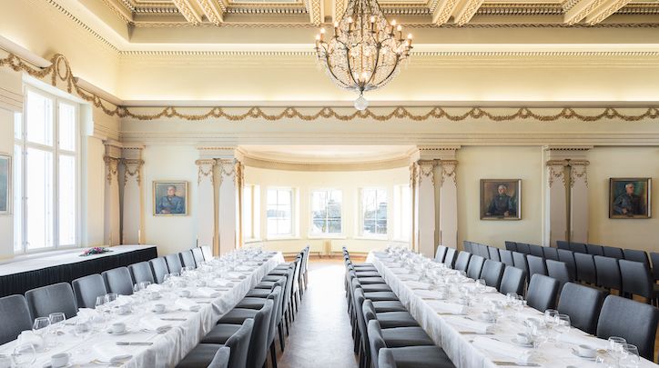 Hyvä maku ja tyylikkyys ei tarkoita täällä vain hienoja puitteita: skandinaavis-ranskalaisen keittiön pääruoat tarjoillaan pöytiin ja hovimestari pitää huolen illan onnistumisesta.