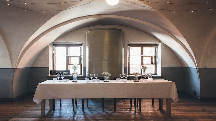 Pienessä, yhtenäisessä tilassa on helppo pitää puheita, nostaa maljat tai vaikka laulaa pieni serenadi tuoreelle puolisolle. Suurista ikkunoista tulviva luonnonvalo, rauhallinen tunnelma, historian havinaa ja ihanaa ruokaa ja juomaa. Mitä muuta juhlilta voi toivoa?