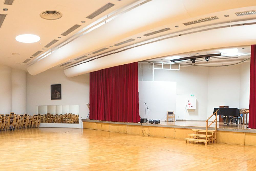 Kalliolan Setlementtitalon kookkain tila on avoin isoille ideoille: laajasti vapaata lattiapintaa ja erillinen esiintymislava taipuvat moneen. Istuskelualue, tanssilattia, esitysnumeroita – sinä päätät!